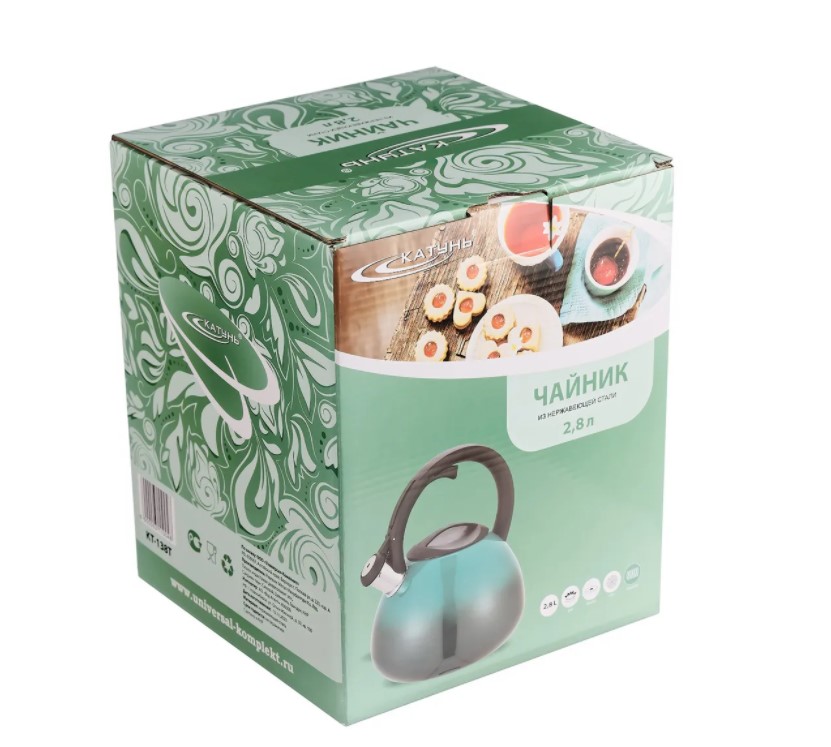 Чайник ТМ Катунь выполнен из безопасной и экологичной нержавеющей стали, не выделяет опасных для здоровья веществ. Благодаря насадке-свистку Вы сразу узнаете, что вода закипела. Ручка оснащена специальным фиксатором, позволяющим не придерживать свисток, что очень удобно при наливании воды. Оптимальное соотношение толщины дна и стенок посуды обеспечивает равномерное распределение тепла, экономию энергозатрат и устойчивость к деформации. Изделие из нержавеющей стали при должном уходе прослужит значительно дольше своих электрических аналогов. Данная модель подходит для всех видов плит, в том числе индукционных. Меняет цвет при нагревании. Объем чайника 2,8 л. Упакован в цветную подарочную коробку.