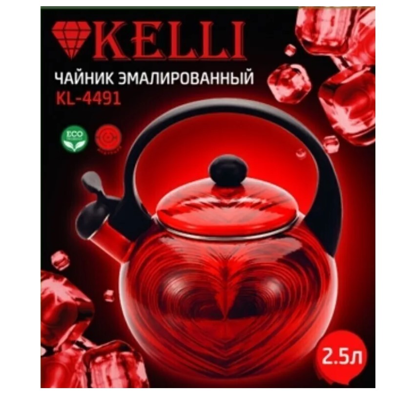 Чайник Kelli KL-4491 эмалированный. Объем: 2,5 литра. 3-хслойное эмалированное покрытие. Носик со свистком и защитным кольцом. Удобная ручка не нагревается. Неповторимость дизайна. Пригоден для всех видов плит.