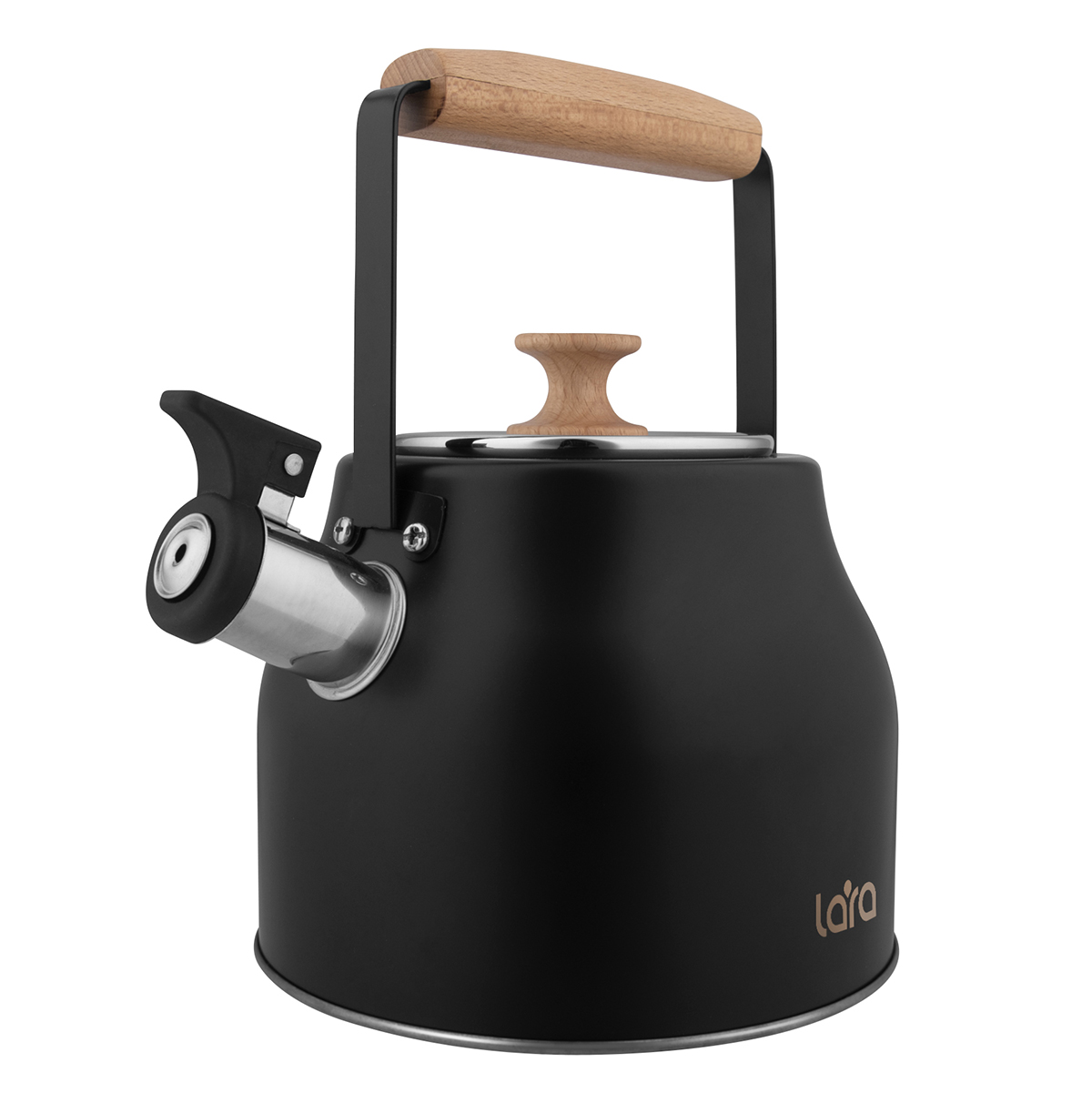 Чайник LARA LR00-87 – гармоничное сочетание стиля и функциональности. Благодаря необычному декору, сможет стать элементом сервировки стола к чаепитию. Ручка чайника и крышечки выполнены из дерева, корпус из пищевой высококачественной стали. Чайник подходит для любой плиты, в том числе для индукционной.