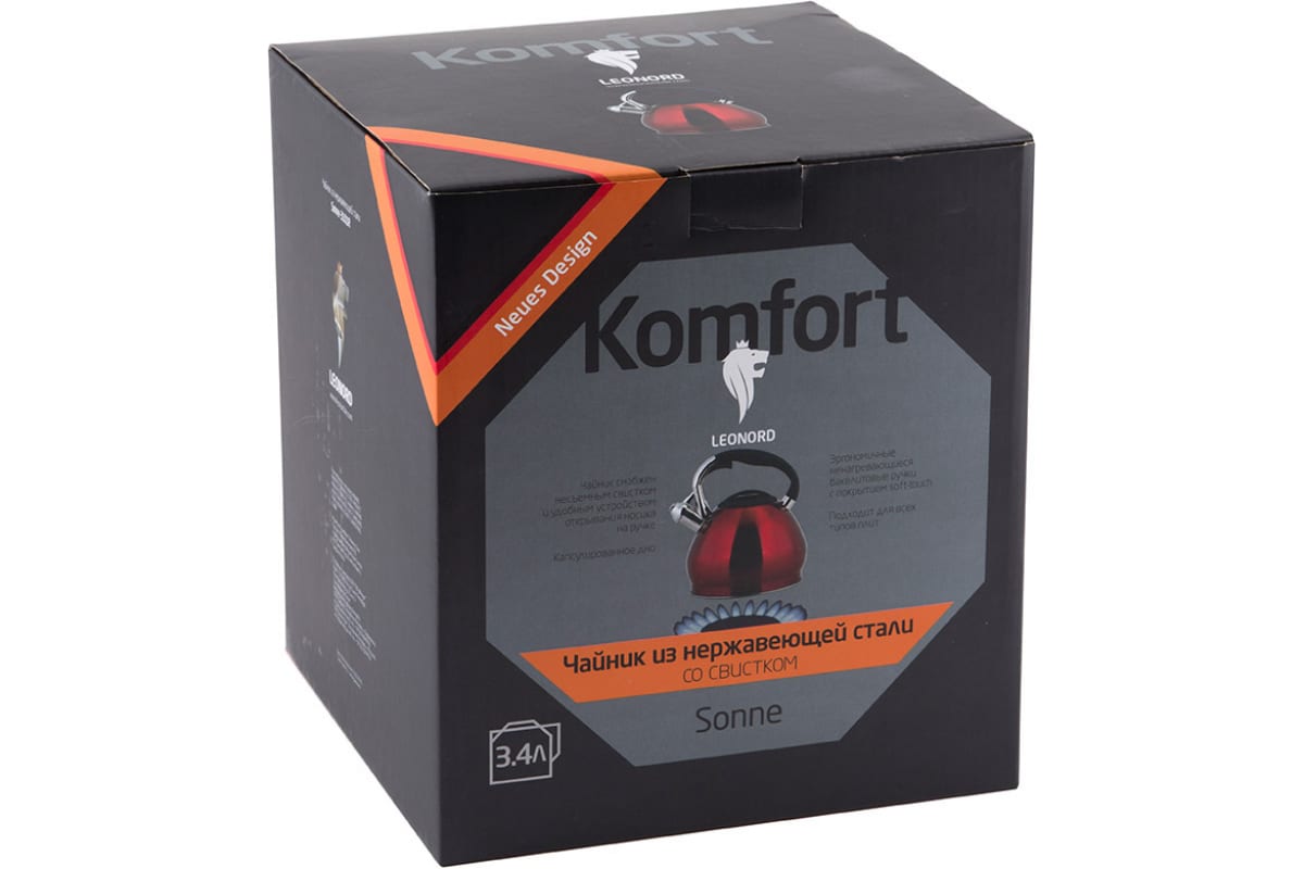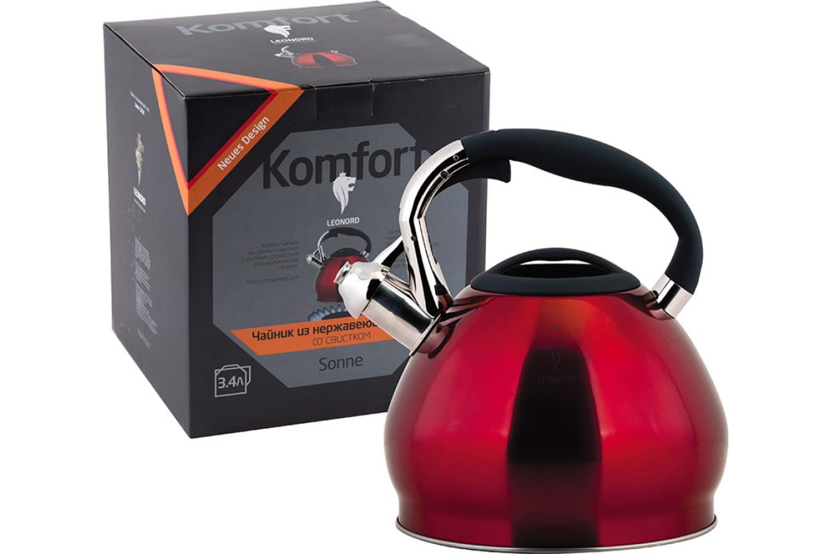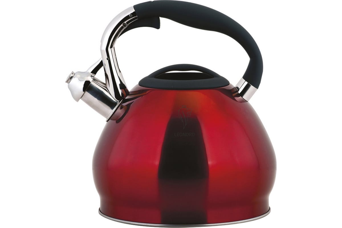 Чайник Leonord Sonne-3101R из нержавеющей стали со свистком объем 3.4 л окрашенный капсулированное дно 002804 предназначен для использования дома или в офисе.