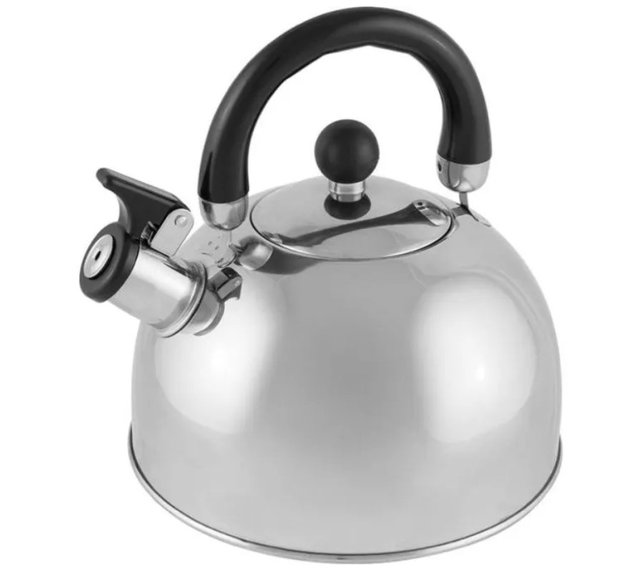 Чайник из нерж стали 201 со свистком. Капсульное дно, 0,5 мм алюминий. Зеркальная полировка корпуса. Складывающаяся ручка. Со свистком. Не рекомендуется мыть в посудомоечной машине. Подходит для всех типов плит.