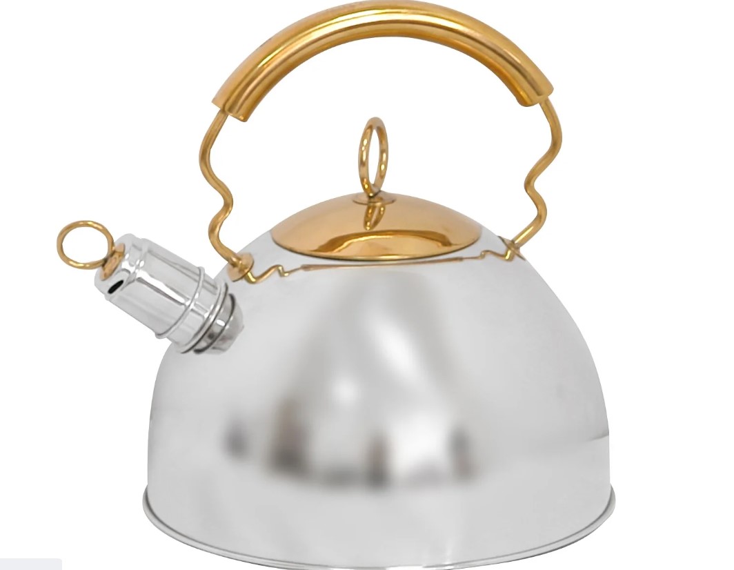 Чайник из нержавеющей стали со свистком Объём: 2,5 литра Материал: нержавеющая сталь. Капсульное дно. Зеркальная полировка корпуса Со свистком Подходит для всех типов плит. Не рекомендуется мыть в посудомоечной машине. Упаковка: инд цветная коробка.