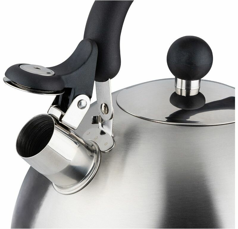 Чайник из нержавеющей стали со свистком, с бакелитовой ручкой, предназначен для использования в офисе или дома.