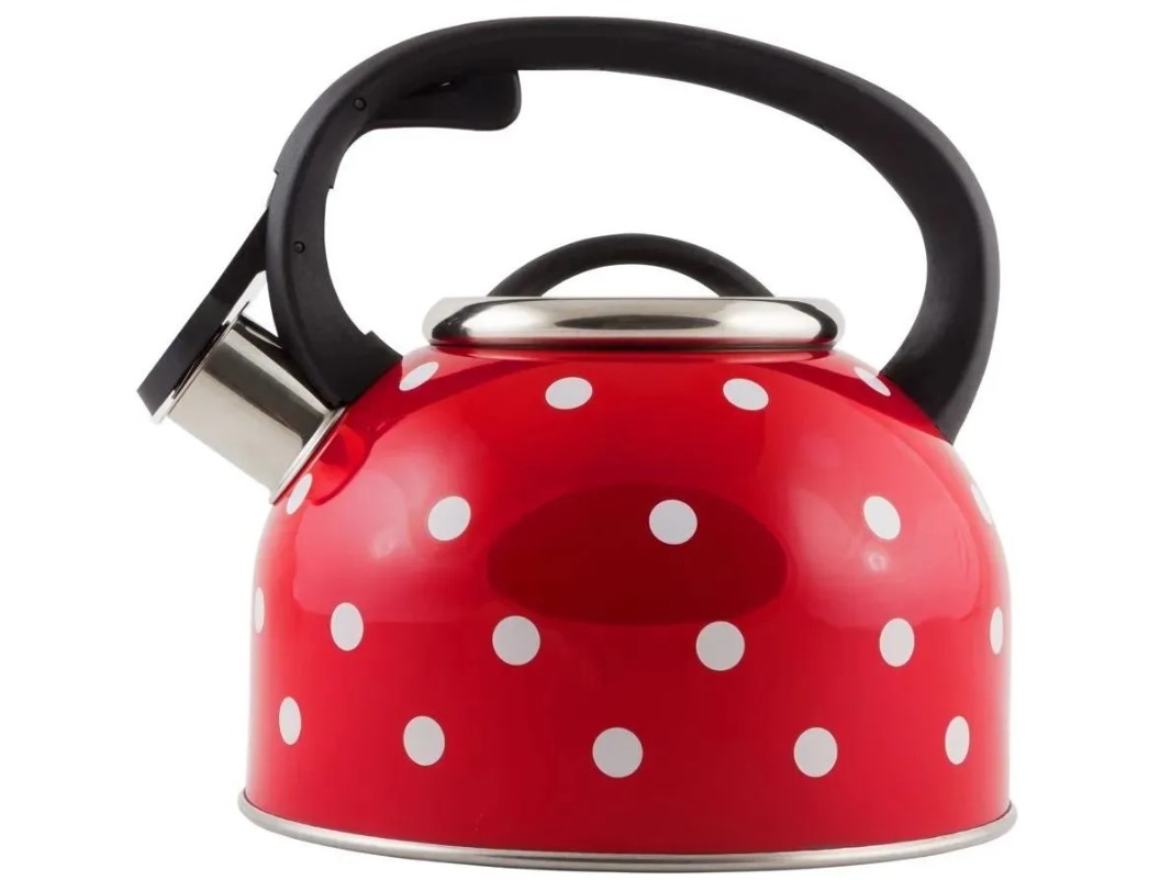 Cо свистком.матовый внутри/окрашенный — снаружи, красный в белый горошек.