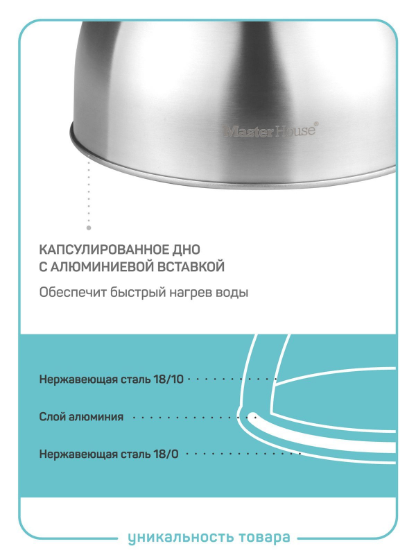 Чайник со свистком для плиты из высококачественной нержавеющей стали 18/10.