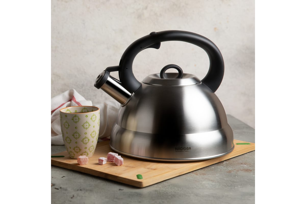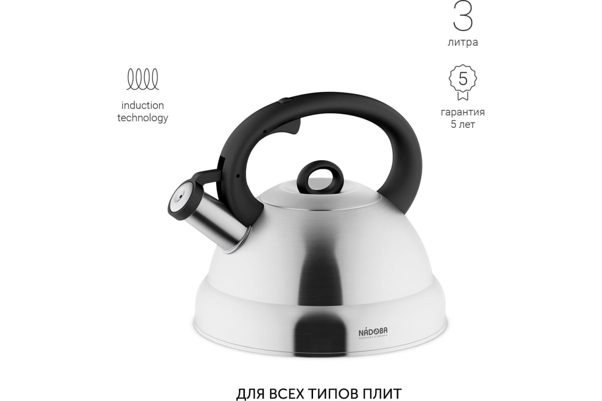 Чайник для всех плит со свитком 3л, серия BERNA 731102, выполненный из высококачественной нержавеющей стали, подходит для всех типов: индукционная, газовая, электрическая и т.д. Изделие не подвержено коррозии и устойчиво к воздействию кислот и щелочей.