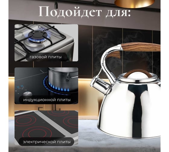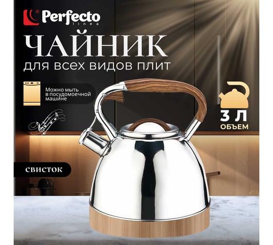 Чайник PERFECTO LINEA со свистком 3 л Ceylon 52-330001 предназначен для использования в офисе или дома.