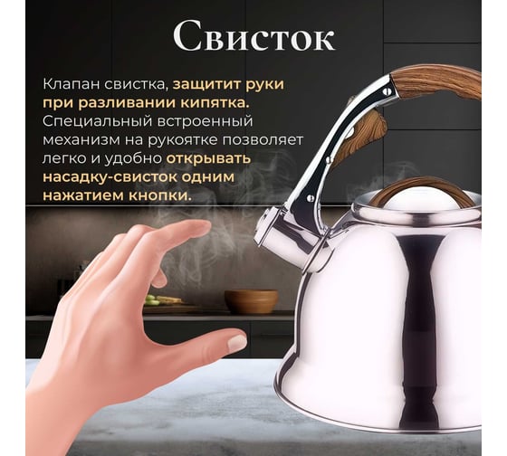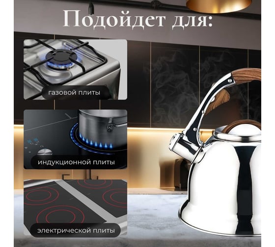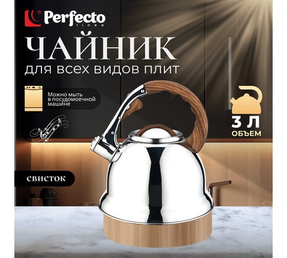 Чайник PERFECTO LINEA со свистком 3 л Earl Gray 52-330003 предназначен для использования в офисе или дома.