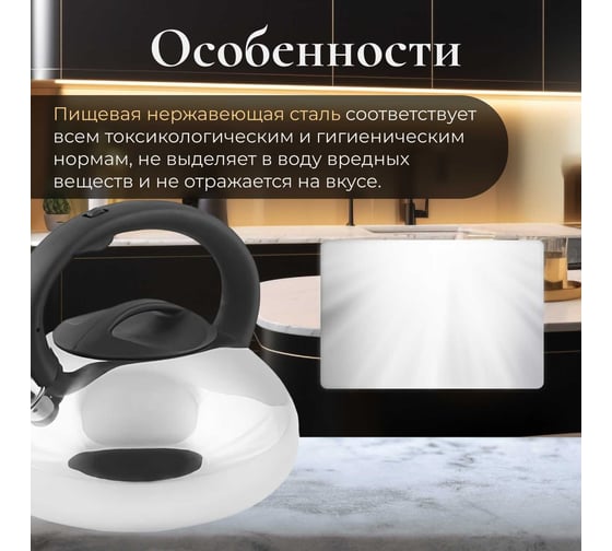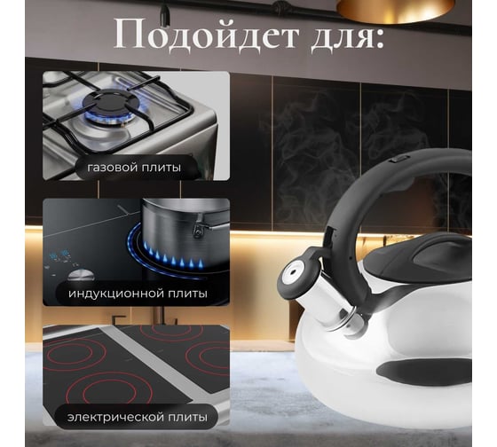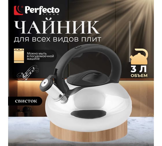 Чайник PERFECTO LINEA со свистком 3 л серебристый металлик Ufo 52-129018 предназначен для использования в офисе или дома.