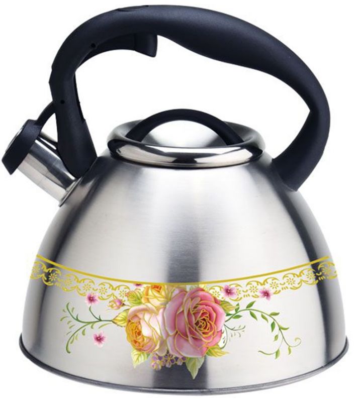 P-650201 Napoli Чайник со свистком 2,5л Модель выполнена по специальной пресс-форме с толщиной боковых стенок 0,4мм. Трехслойное дно, выполненное по технологии капсулирования, не деформируется и служит для равномерного распределения тепла. Ненагревающаяся нейлоновая ручка с кнопкой для открывания носика. Безопасный и громкий свисток вовремя проинформирует, что вода закипела. Высокопрочное покрытие чайника сохраняет отличный внешний вид изделия намного дольше. Подходит для всех типов нагревательных поверхностей. Материал нержавеющая сталь.