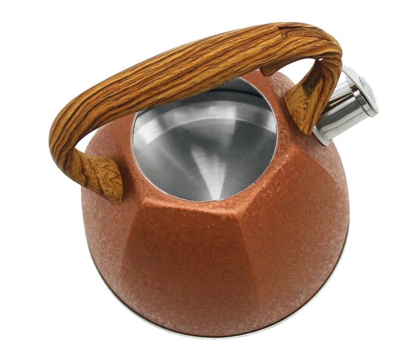 P650212 Napoli Чайник со свистком, 3л. Модель выполнена по специальной пресс-форме с толщиной боковых стенок 0,4мм. Трехслойное дно, выполненное по технологии капсулирования, не деформируется и служит для равномерного распределения тепла. Ненагревающаяся нейлоновая ручка с кнопкой для открывания носика. Безопасный и громкий свисток вовремя проинформирует, что вода закипела. Высокопрочное покрытие чайника сохраняет отличный внешний вид изделия намного дольше. Подходит для всех типов нагревательных поверхностей.