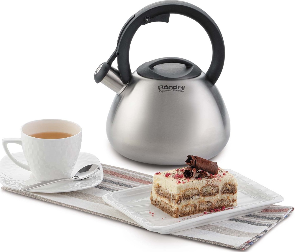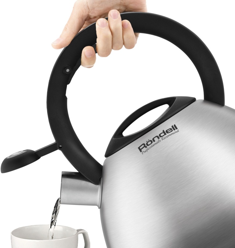 Эргономичная ручка чайника позволяет открывать свисток и наливать воду одной рукой. Чайник подходит для всех видов плит.