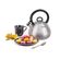 Чайник объемом 2,2 л с изысканной матированной полировкой корпуса способен стать настоящим украшением вашей кухни! О закипании воды он оповестит сигналом свистка, расположенном на клапане носика. Открывается чайник очень легко — нажатием специальной кнопки на нейлоновой ненагревающейся ручке. Посуда коллекции Calypso подходит для всех видов плит, включая индукционные.