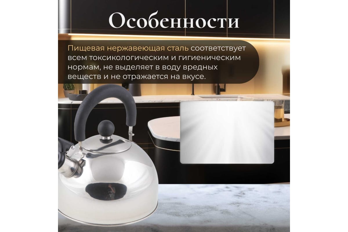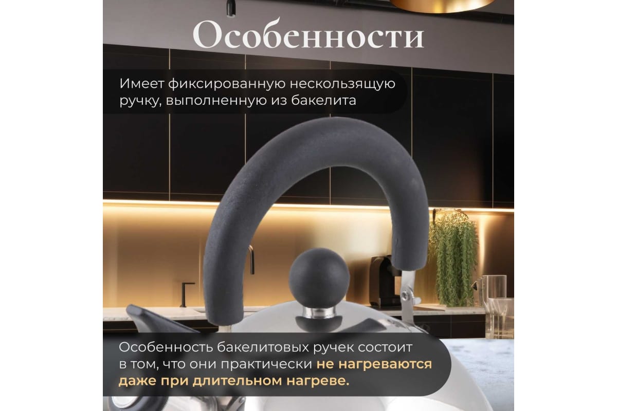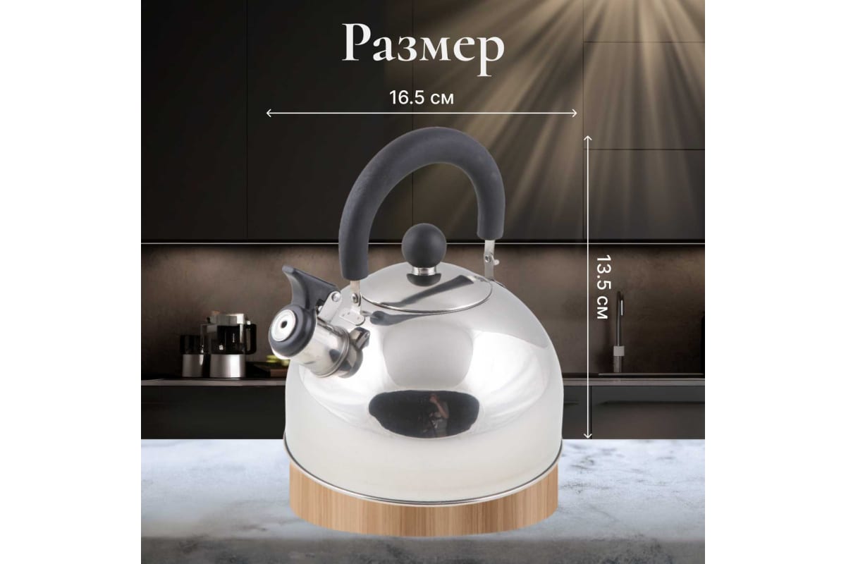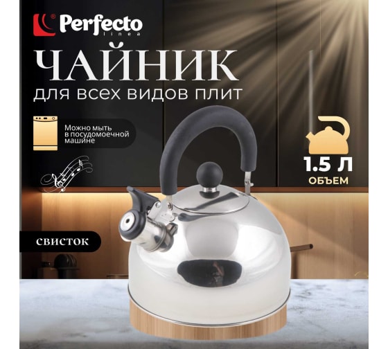 Чайник PERFECTO LINEA со свистком 1.5 л серебристый металлик Holiday 52-112018 предназначен для использования в офисе или дома.