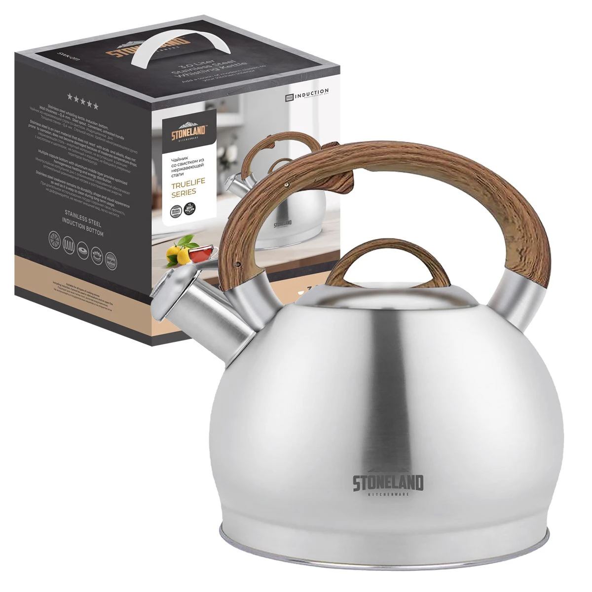Чайник из нержавеющей стали со свистком STONELAND