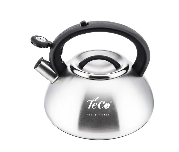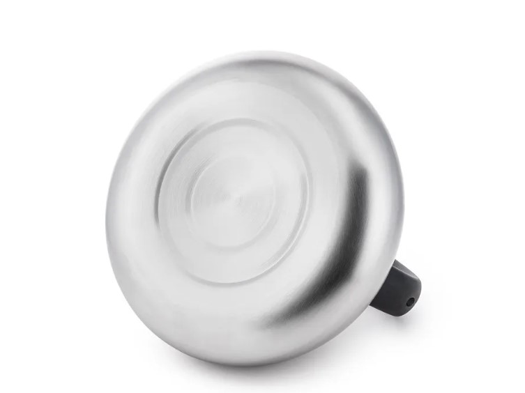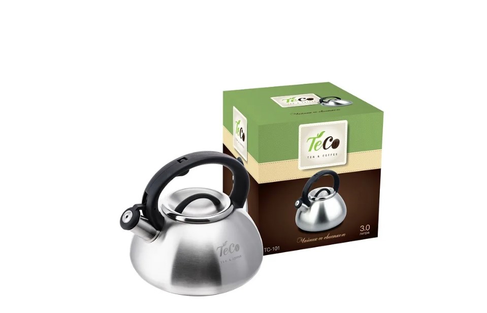 Чайник из нержавеющей стали со свистком, имеет бесшовный корпус, исключающий протекание, и матовое покрытие корпуса. Удобная бакелитовая ручка оснащена встроенным механизмом поднимания свистка. Чайник подходит для всех типов плит. Толщина стенок — 0,6 мм.