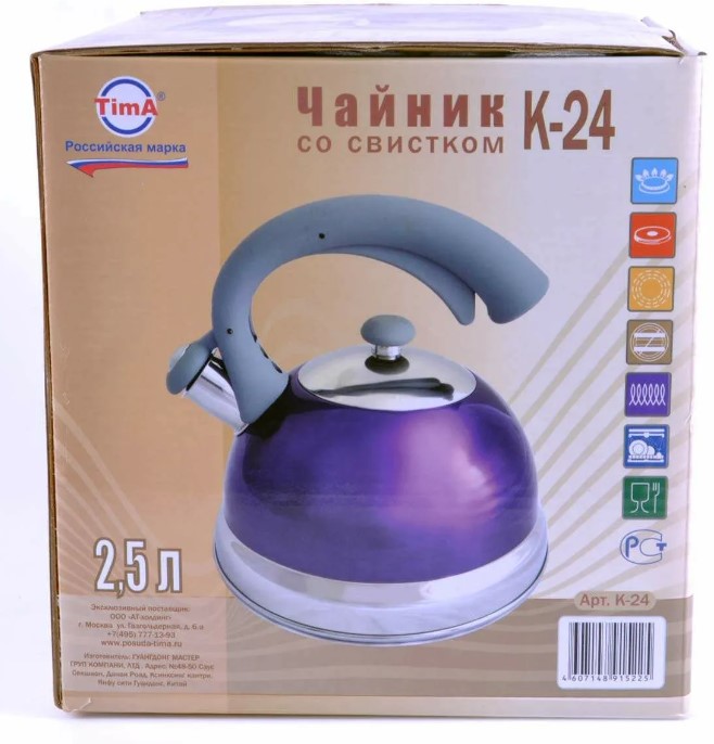 Чайник фиолетового цвета от бренда TimA, Россия отличается стильным дизайном и высокими эксплуатационными качествами. Чайник оборудован свистком. Своим звучным сигналом он вовремя оповестит Вас о том, что вода закипела.