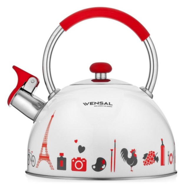 Система открывания носика на свистке чайника – управление одной рукой. Ручка имеет силиконовую насадку для безопасности открывания. Чайник с высоким носиком и свистком – большая полезная емкость. Чайник совместим со всеми типами плит.