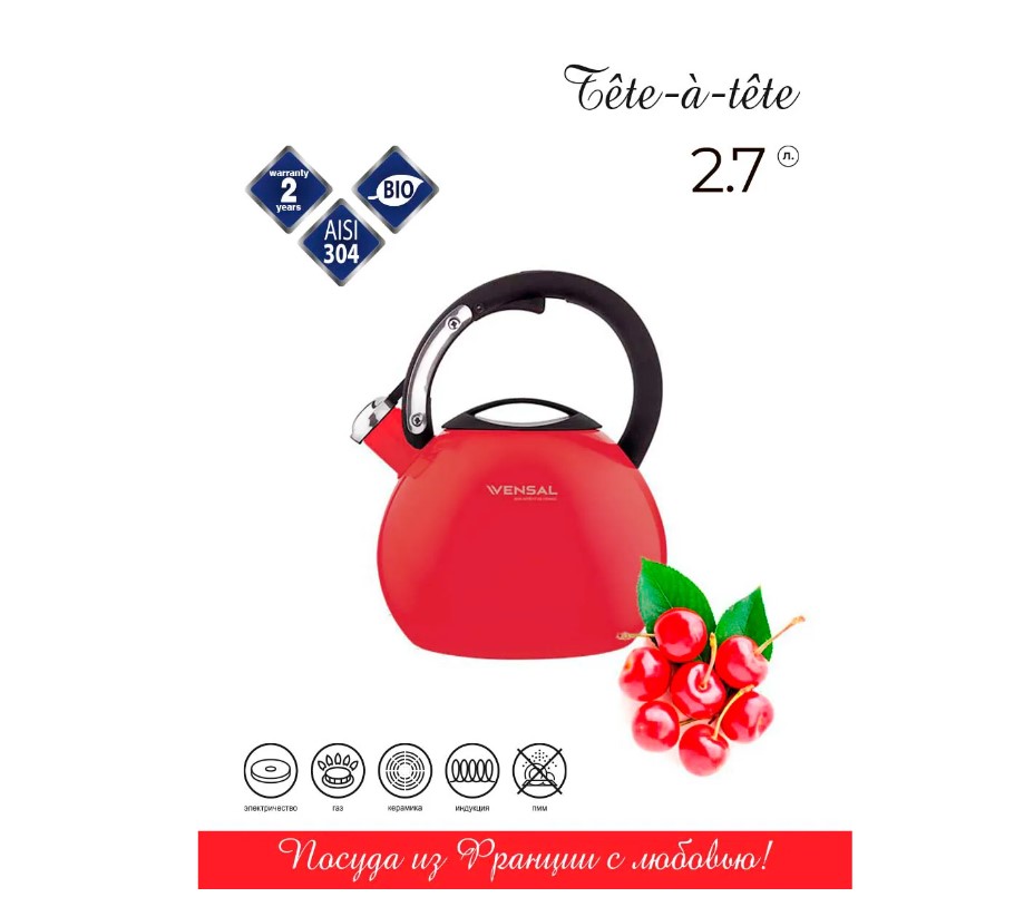 Чайник Vensal Tete-a-Tete 2,7 л с ручкой из термостойкого пластика VS3009