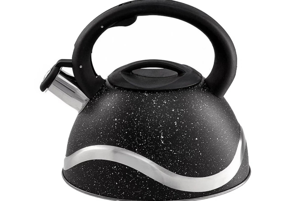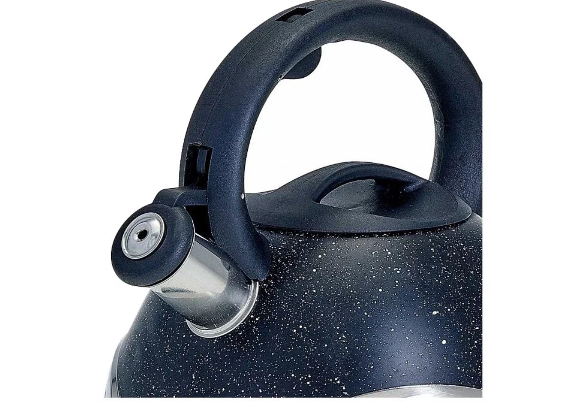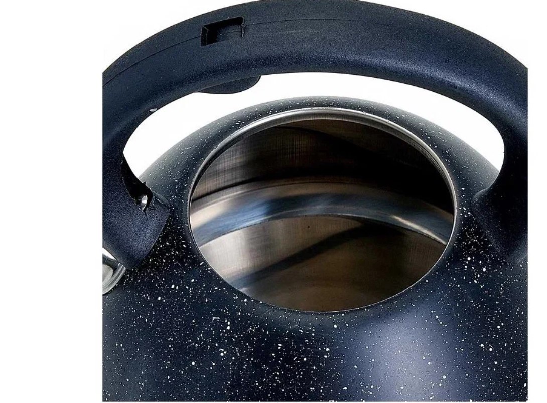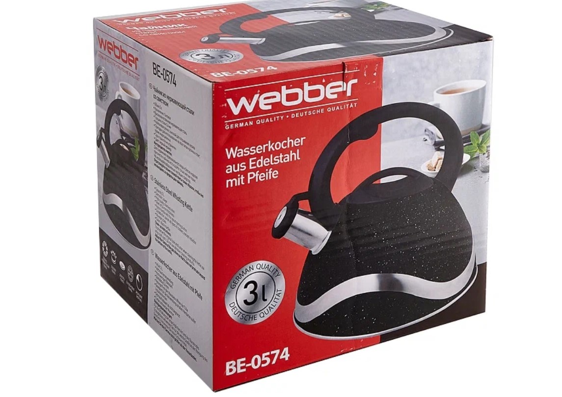 Чайник для плиты Webber BE-0574 объемом 3 л дополнен незаменимым свистком, который своевременно проинформирует пользователей о том, что пришло время снимать его с плиты. Чтобы обеспечить длительное поддержание максимальной температуры жидкости, в этом домашнем помощнике появилось капсулированное дно, а также утолщенные стенки корпуса. Ручка из нейлона не подвержена воздействию высоких температур. Для удобства при ежедневной эксплуатации чайник содержит специальную кнопку, нажав на которую Вы молниеносно откроете его носик.