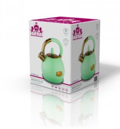Чайник Zeidan Backman BM-0701 TIFFANY со свистком 3,0 л изготовлен из нержавеющей стали с капсулированным индукционным дном и курковым механизмом.