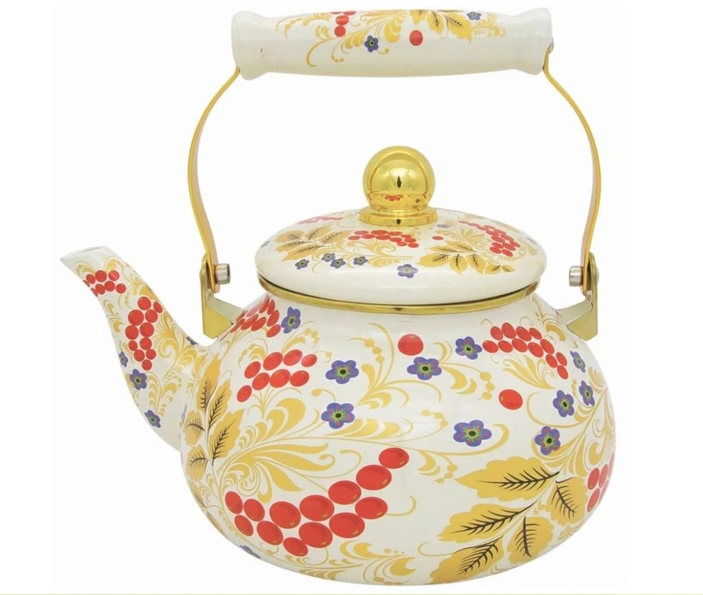 Чайник Zeidan Z-4286-05 объемом 2.5 литра. Изготовлен из эмалированнаой стали. Изящная ручка под золото. Внутреннее черное эмалированное покрытие обладает свойством антинакипь, наружное покрытие эмаль с рисунком. Чайник подходит для всех видов плит, включая индукционную.