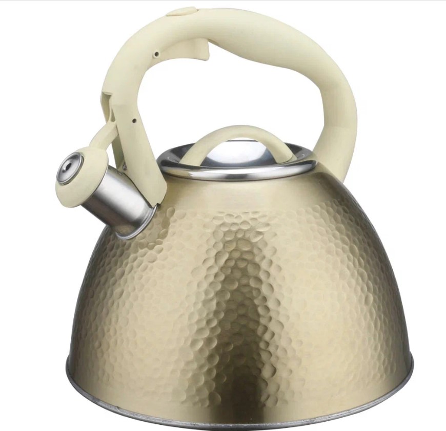 Чайник со свистком, 3,0 л, нержавеющая сталь, капсулированное индукционное дно, курковый механизм, внешнее покрытие - антипригарное цветное покрытие, устойчивое к высоким температурам, ручка с покрытием "soft-touch". Подарочная упаковка.