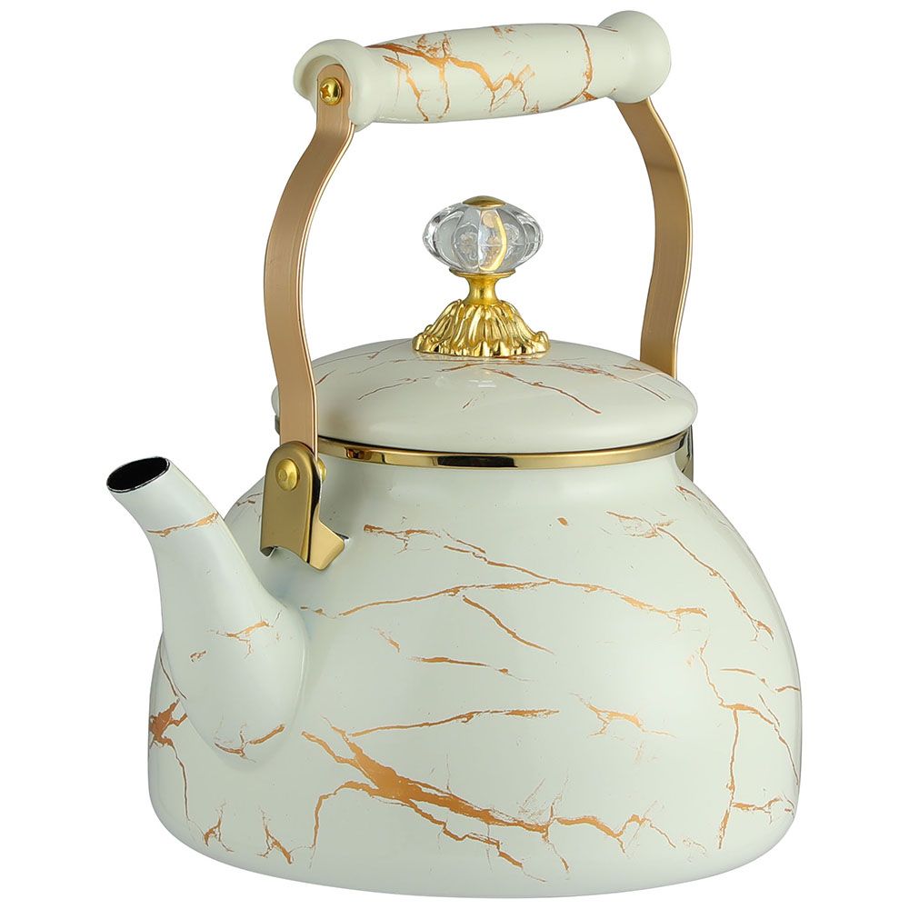 Чайник со свистком ZEIDAN Z-4391 3,0 л, Чайник 3,0 л, эмалированная сталь, комбинированная ручка "под золото", внутреннее эмалированное покрытие, ручка на крышке "кристалл", наружное покрытие — эмаль с рисунком. Подходит для индукции. Подарочная упаковка.