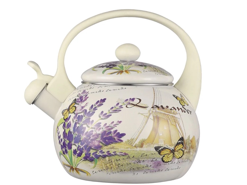 Чайник со свистком 2.5 л, эмалированная сталь, бакелитовая ручка, наружное покрытие - эмаль с рисунком.