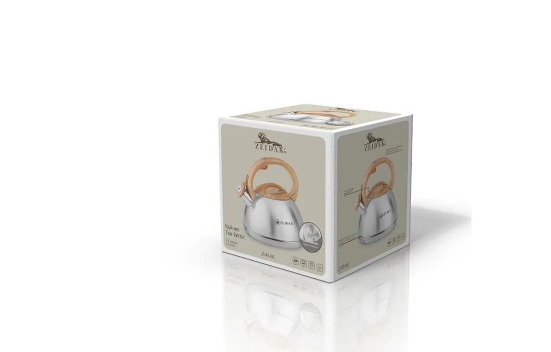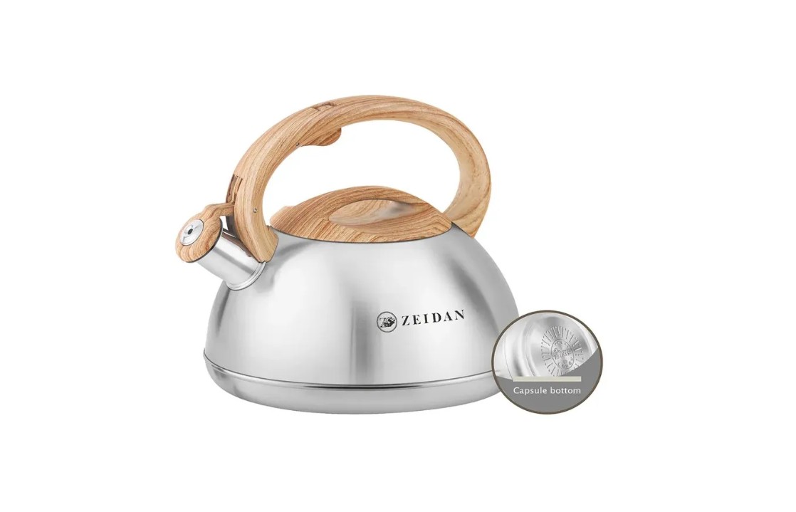 Чайник со свистком ZEIDAN Z-4546 объемом 3,0 литра изготовлен из прочной нержавеющей стали, что обеспечивает долговечность и устойчивость к коррозии. Оснащен индукционным капсулированным дном, которое быстро и равномерно нагревается на любой плите, включая индукционные. Курковый механизм позволяет легко открыть крышку одной рукой, делая процесс закипания воды максимально удобным. Фиксированная ручка с мягким покрытием soft-touch «под дерево» обеспечивает надежный захват и комфорт при использовании, предотвращая риск ожогов и скольжения. Стильный дизайн и практичные функции делают этот чайник отличным помощником на любой кухне. Объем 3 литра идеально подходит для приготовления большого количества горячей воды для семьи или гостей. Высокое качество материалов и современные технологии производства гарантируют долговечность и безопасность эксплуатации.