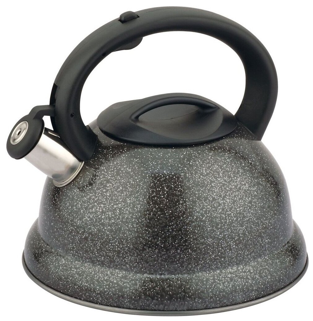 P-650192 Napoli Чайник со свистком 2,7л Модель выполнена по специальной пресс-форме с толщиной боковых стенок 0,4мм. Трехслойное дно, выполненное по технологии капсулирования, не деформируется и служит для равномерного распределения тепла. Ненагревающаяся нейлоновая ручка с кнопкой для открывания носика. Безопасный и громкий свисток вовремя проинформирует, что вода закипела. Высокопрочное покрытие чайника сохраняет отличный внешний вид изделия намного дольше. Подходит для всех типов нагревательных поверхностей. Материал нержавеющая сталь.