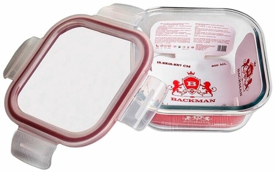 Контейнер для хранения, 15.8х15.8х7 см, 800 мл, корпус из термостойкого боросиликатного стекла, крышка из пластика. Возможность использования для хранения в холодильнике, морозильной камере, для запекания в духовом шкафу. Подарочная упаковка.