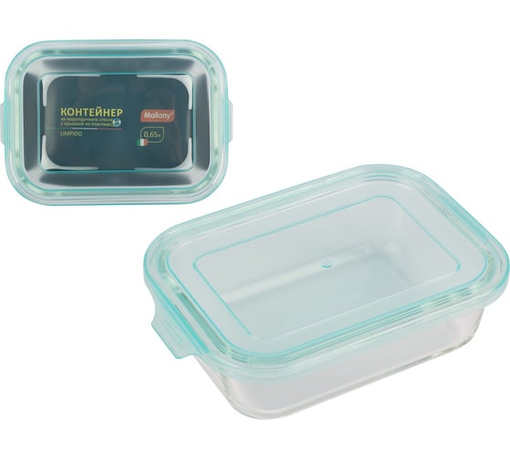 Контейнер Mallony LIMPIDO 650 мл из жаропрочного стекла с крышкой из пластмассы прямоугльный, температура -20 до +200 С 005480 предназначен для хранения и разогрева продуктов в духовке или СВЧ-печи.