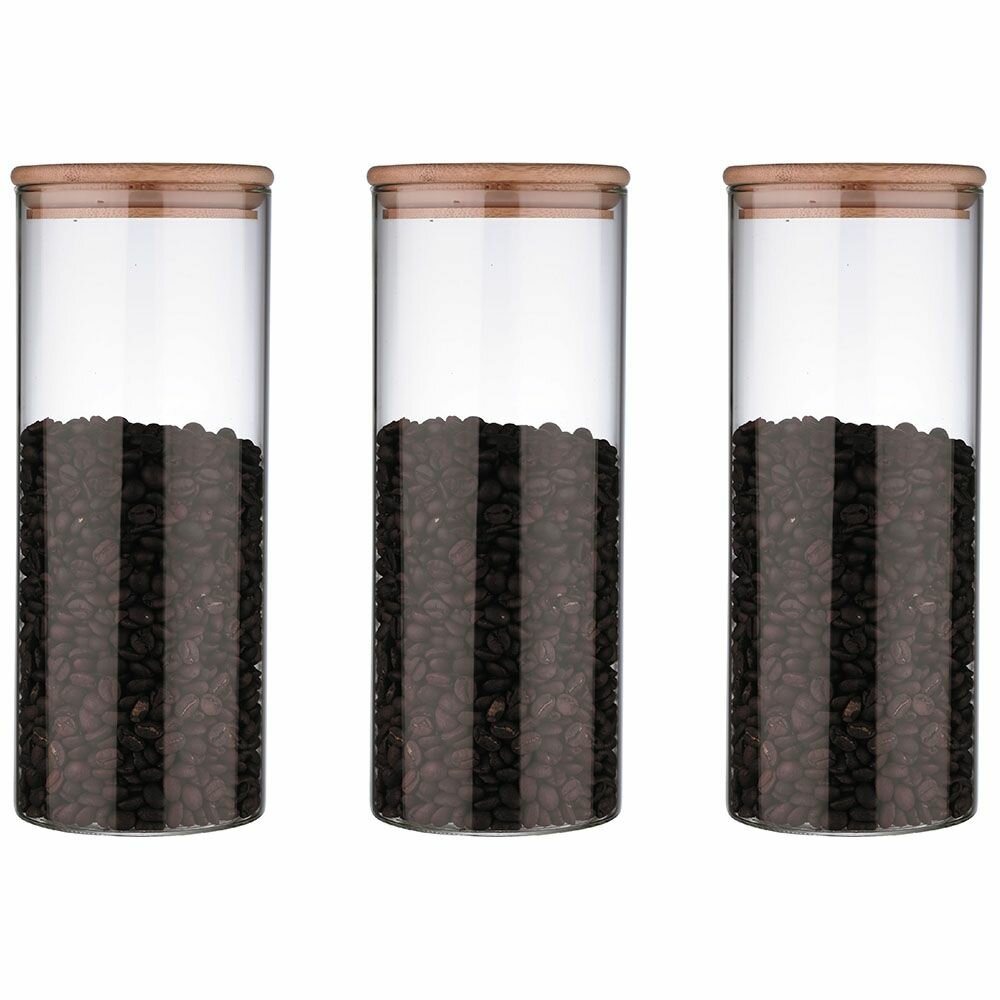 В наборе баночки из высококачественного боросиликатного стекла с крышками из бамбука.