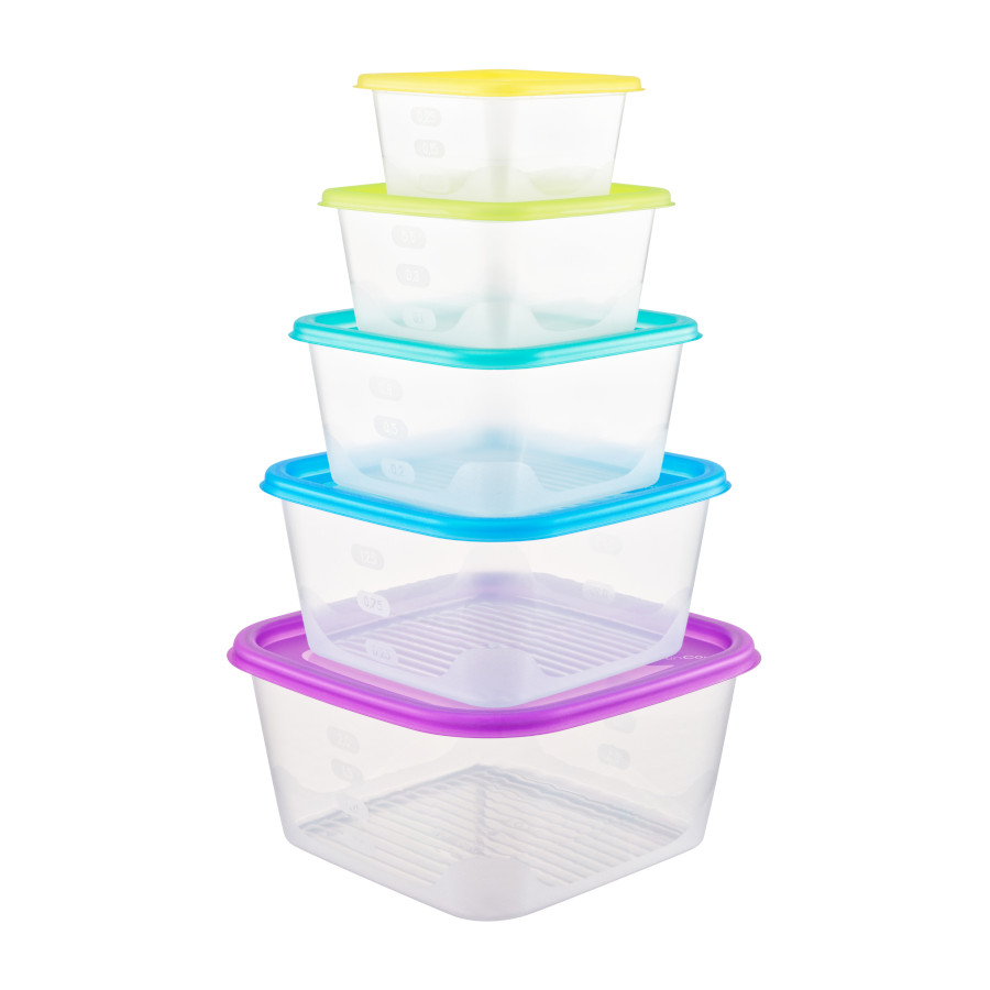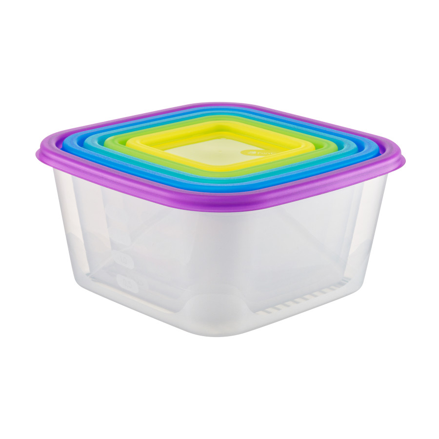 В наборе 5 емкостей объемом 0,33л, 0,63л, 1,1л, 1,7л, 2,6л.