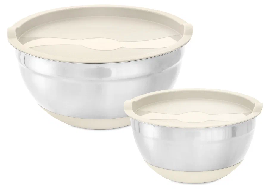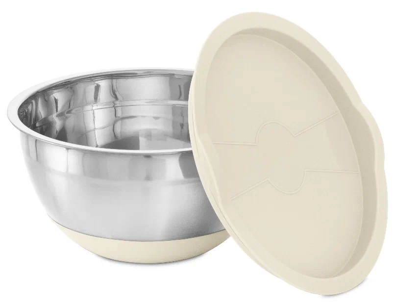Фабричное производство За этим материалом просто ухаживать, он надежен в использовании. Силиконовое дно не позволяет мискам скользить по поверхности, поэтому они идеально подходят для смешивания продуктов вручную или миксером. Миски обладают функцией хранения продуктов благодаря плотно прилегающей силиконовой крышке. Они функциональны, и в то же время занимают немного места.