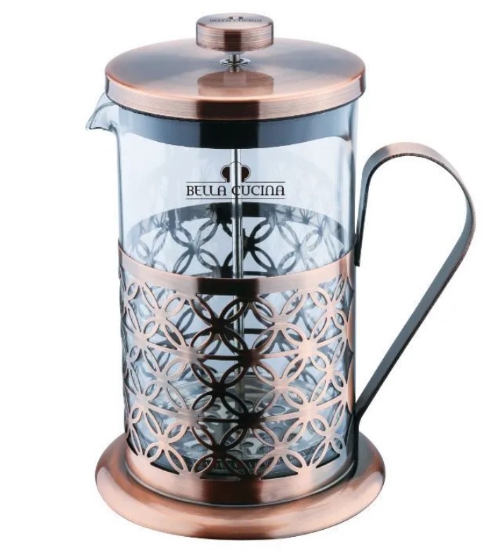 Френч-пресс Bella Cucina поможет заварить и красиво подать кофе, чай, напитки из трав. Функциональность и качество такого френч-пресса принесут Вам удовольствие от использования, а изысканный дизайн легко впишется в интерьер Вашей кухни.