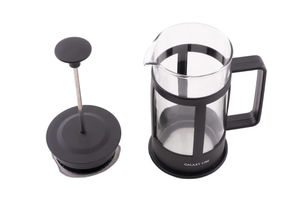 Френч-пресс GALAXY LINE GL9305 предназначен для приготовления чая и кофе. По вкусу, аромату и цвету кофе из френч-пресса GALAXY LINE отличается от сделанного в кофемашине или сваренного в турке. После отжима и фильтрации он имеет более мягкий и насыщенный вкус, более раскрытый и естественный запах. В напитке, приготовленном таким способом, сохраняется больше полезных и ароматических веществ. Данная модель имеет компактный размер и объем 350 мл. Френч-пресс выполнен в корпусе из высококачественного пищевого пластика с колбой из термостойкого стекла. Оно экологически безопасно, огнеупорно, может по долгу соприкасаться с напитками, не придавая им постороннего привкуса. Дополнительным преимуществом данной модели является наличие фильтра из нержавеющей стали марки 304. Благодаря специальному фильтру и прессу Вы можете использовать чайные листья любых сортов и разной величины, а также готовить "капучино", кофе по-восточному, эспрессо, - как вам больше нравится. Френч-пресс GL9305 имеет эргономичную ручку и стильный современный дизайн, поэтому станет украшение любого интерьера. Техника для приготовления горячих напитков GALAXY LINE разработана для того, чтобы создать атмосферу комфорта и уюта в Вашем доме.