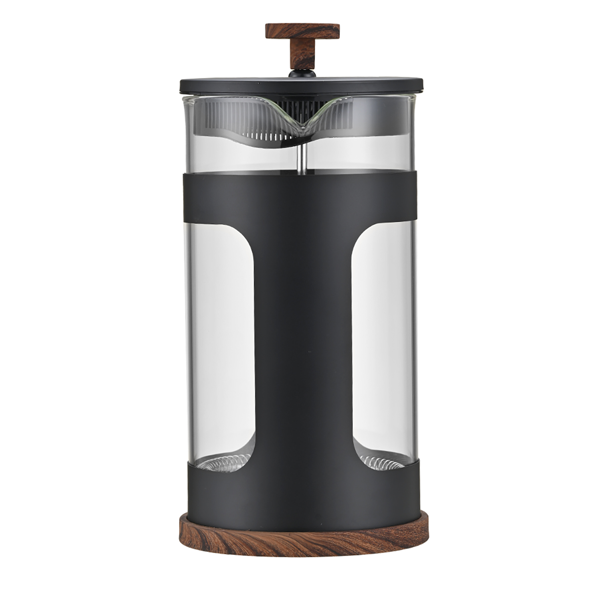 Колба сделана из жаропрочного боросиликатного стекла, устойчивого к резкому перепаду температуры. Пресс-фильтр с уплотнительным кольцом из нержавеющей стали. Пластиковый корпус не нагревается, что минимизирует риск получения ожогов. Форма носика идеальна для наливания напитков и препятствует образованию подтеков.