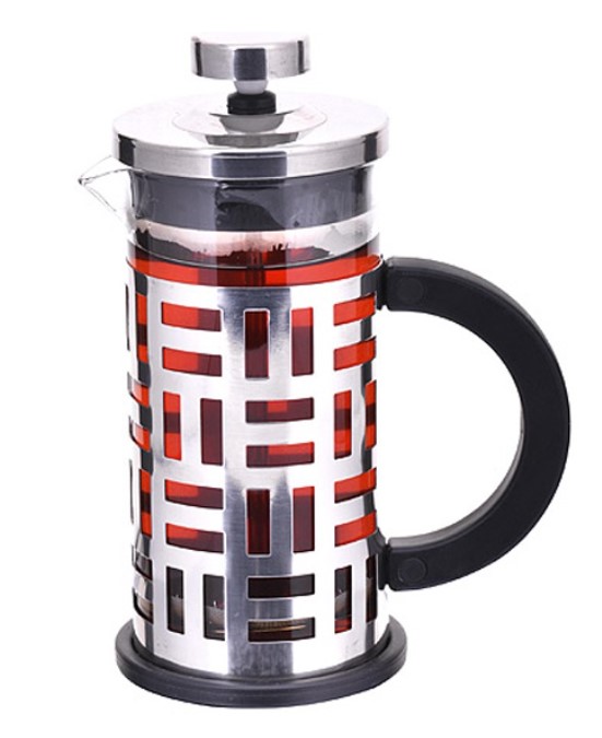 Френч-пресс изготовлен из высокотехнологичных материалов на современном оборудовании. Колба из высококачественного термостойкого боросиликатного стекла заключена в корпус из нержавеющей стали. Фильтр-поршень из нержавеющей стали выполнен по технологии "press-up" для обеспечения равномерной циркуляции воды в чайнике. Удобная, не нагревающаяся ручка также выполнена из качественной нержавеющей стали.