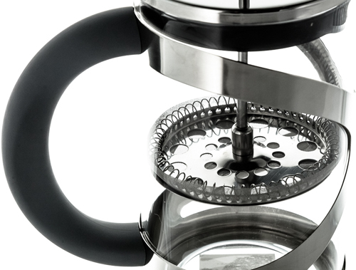 Крышка плотно прилегает к стенкам колбы, а с помощью решетки происходит дополнительное очищение ароматного напитка. Прозрачная емкость эффективно сохраняет температуру содержимого и позволяет визуально оценивать крепость настоя. Во френч-прессе Rondell Crystal Grey RDS-838 0,6 л удобно готовить чай и кофе с различными добавками: пряностями, травами, ягодами или фруктами.