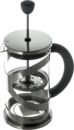 Френч-пресс Rondell Crystal Grey RDS-838 0,6 л имеет фильтрующую насадку на поршне, которая эффективно задерживает заварочные листья. Прочный стеклянный кувшин с удобным антикапельным носиком помещен в корпус из высококачественной нержавеющей стали, а противоскользящая бакелитовая рукоятка обеспечивает безопасную эксплуатацию.