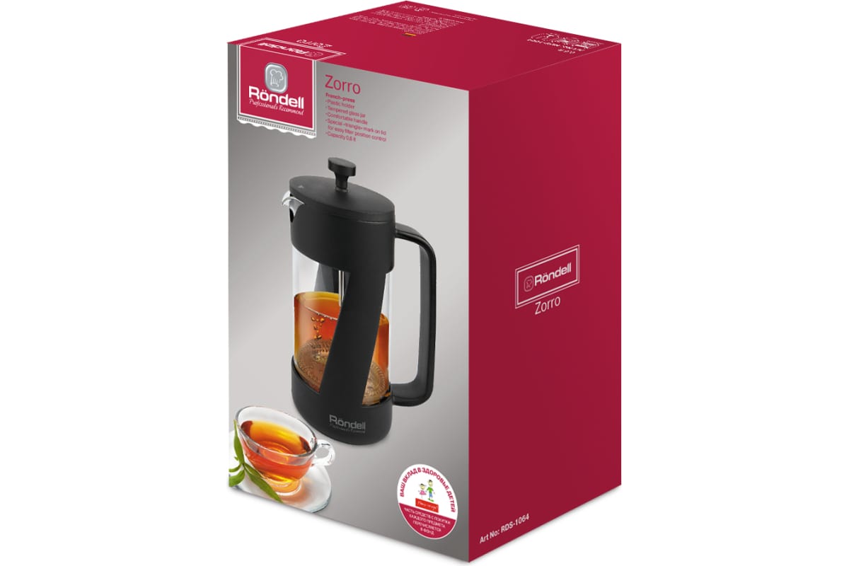 Френч-пресс RONDELL Zorro 0.6 л RDS-1064 предназначен для заваривания чая, кофе, травяных напитков.
