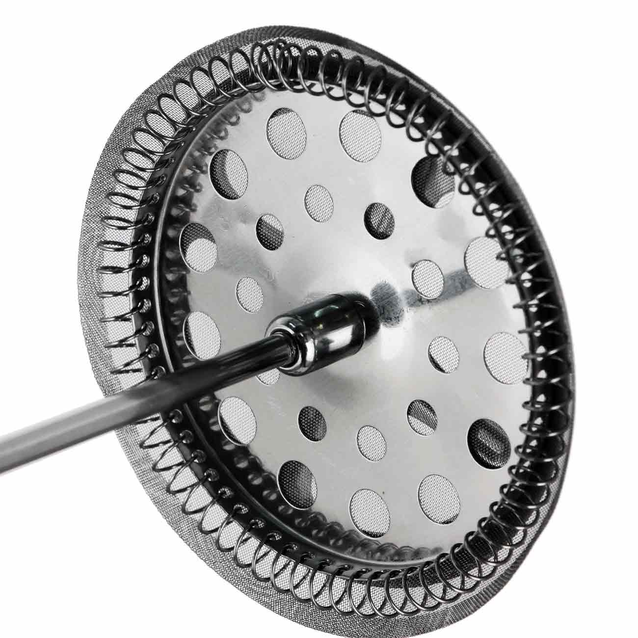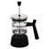 Корпус изготовлен из прочной нержавеющей стали и прозрачного пластика. В нём размещён пресс-ситечко, с помощью которого легко можно отжать заварку, чтобы чаинки не попали в чашку. Термоизолированная ручка позволяет безопасно поднимать эту модель и переносить её с места на место.