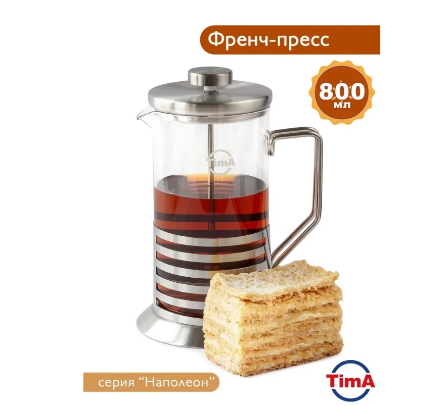 Заварочный чайник ТимА "Наполеон" объемом 800 мл изготовлен из высококачественной нержавеющей стали, при этом колба изготовлена из боросиликатного термостойкого стекла, которое прочнее и практичнее обычного двойного.