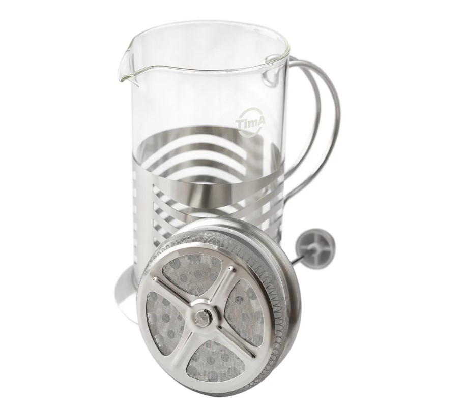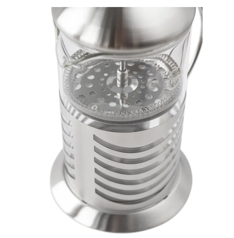 Френч-пресс предназначен для быстрого заваривания чая и приготовления кофе, поршень из нержавеющей экологичной стали не вступает во взаимодействие с напитками и имеет сетчатый фильтр для чаинок. Крышка френч-пресса также имеет дополнительный пластиковый фильтр.Основание из нержавеющей стали придает дополнительную устойчивость френч-прессу, можно использовать без подставки под горячее. Изделие легко моется, долго сохраняет привлекательный внешний вид, можно мыть в посудомойке. Френч-пресс идеально подходит для заваривания листового чая и зернового кофе, мелкого и среднего помола.