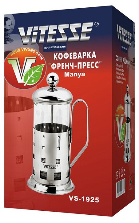 Что может быть лучше посиделок с кружкой чая или кофе. Вы тоже так считаете? Тогда вы должны оценить по достоинству Vitesse VS-1925 . Это необходимая вещь для любого чаёвника или кофемана. Он изготовлен из прочного термостойкого стекла, а стальная ручка имеет удобную форму. Френч-пресс можно мыть в посудомоечной машине.