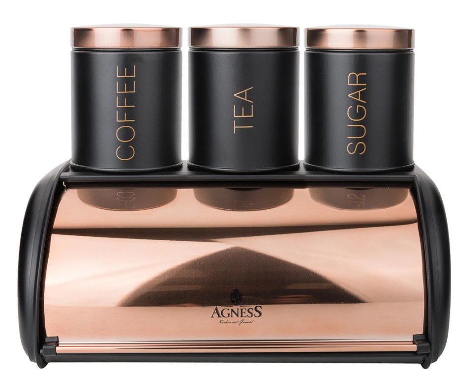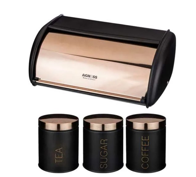 Хлебница металлическая Agness 938-049 35,5х23х14,5см с 3-мя банками для сыпуч. прод. d 10 см, выс 12 см