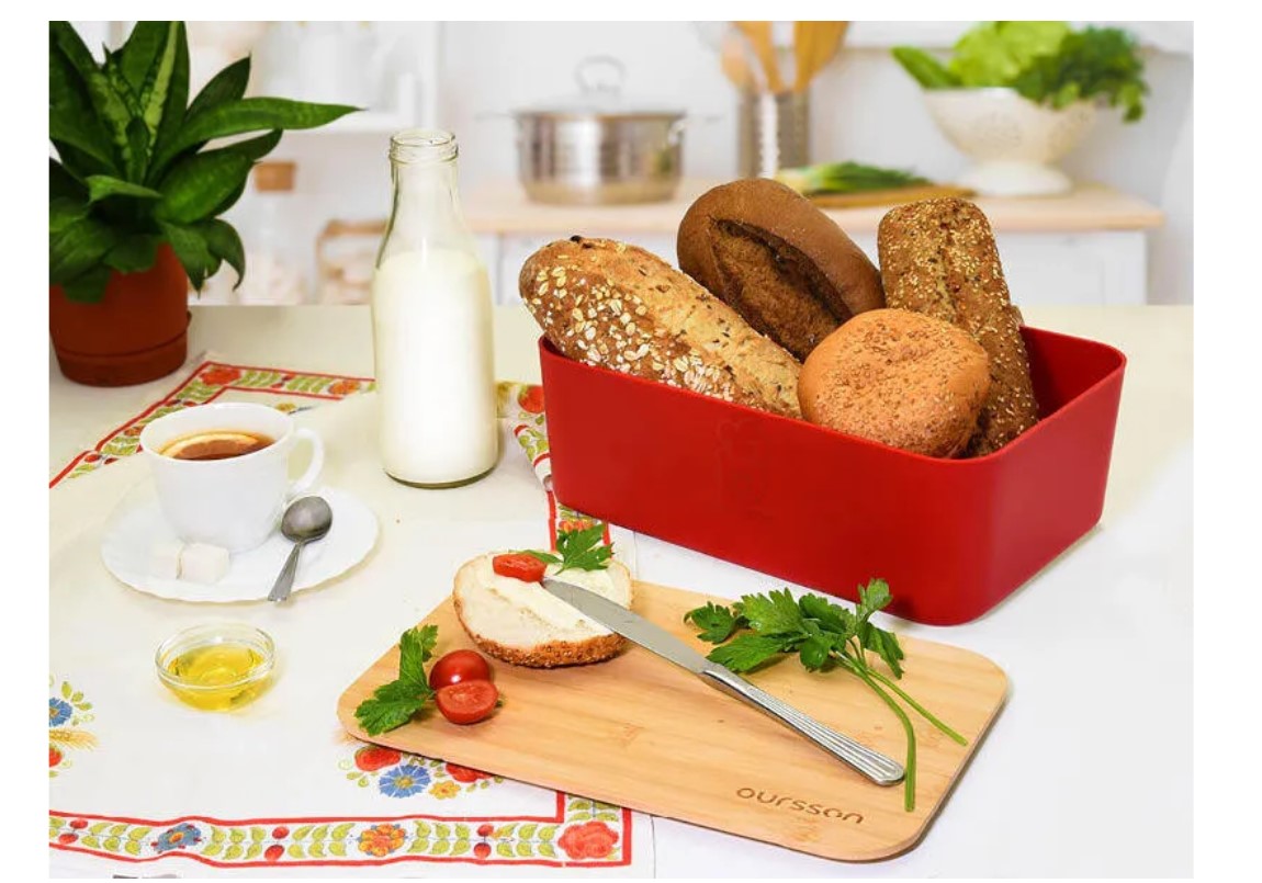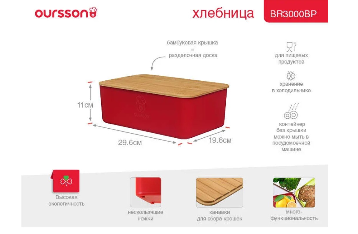 Хлебница состоит из легко моющейся пластиковой основы с нескользящими ножками и высококачественной бамбуковой крышки, которая при переворачивании превращается в разделочную доску для хлеба. Доска имеет канавки для сбора крошек.Вообще, вы можете использовать данное изделие как мультифункциональный контейнер для хранения любых пищевых продуктов на кухне. Контейнер с крышкой можно ставить в холодильник.