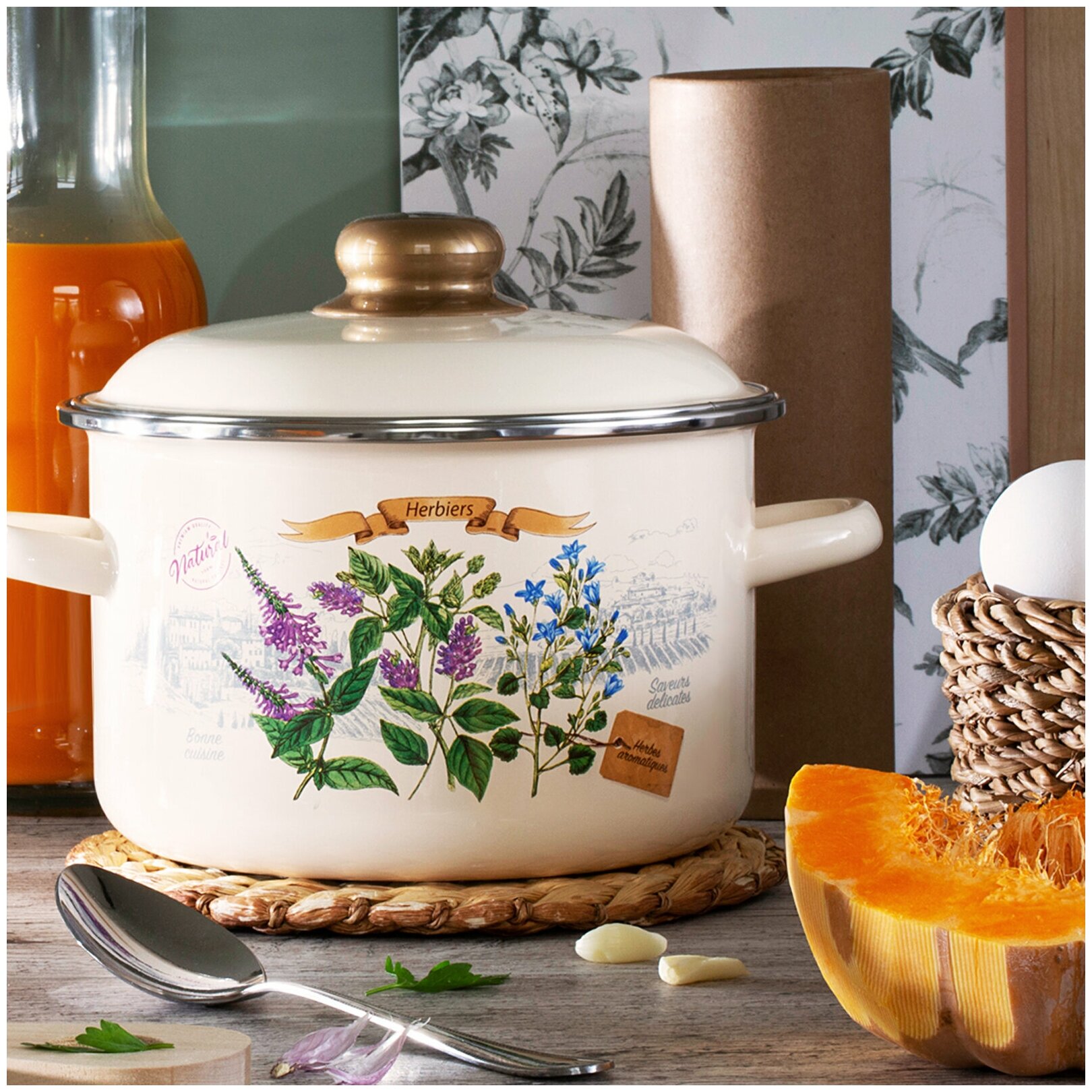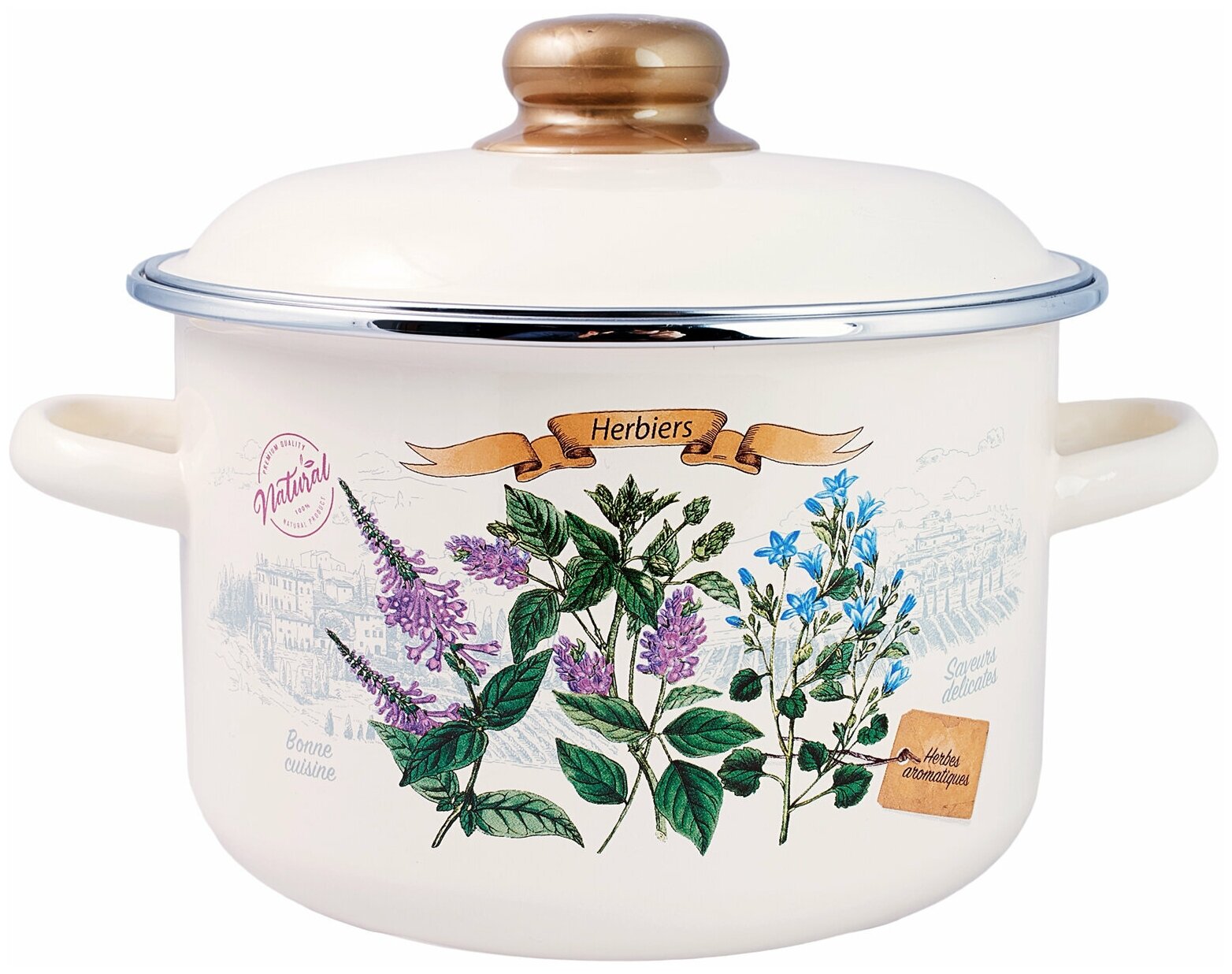 Кастрюля производится из экологичного природного сырья и соответствует стандартам ГОСТ, что гарантирует отсутствие химических реакций и сохраняет вкус пищи при приготовлении. Стекловидное эмалированное покрытие надежно предохраняет металл основания от контакта с продуктами. Кастрюля отличается высоким качеством. Изделие подходит для всех видов плит: газовых, электрических и индукционных. Гладкая не пористая поверхность посуды обеспечивает простой и легкий уход. Уникальный дизайн посуды серии Прованс украсит любую кухню и создаст атмосферу домашнего уюта.